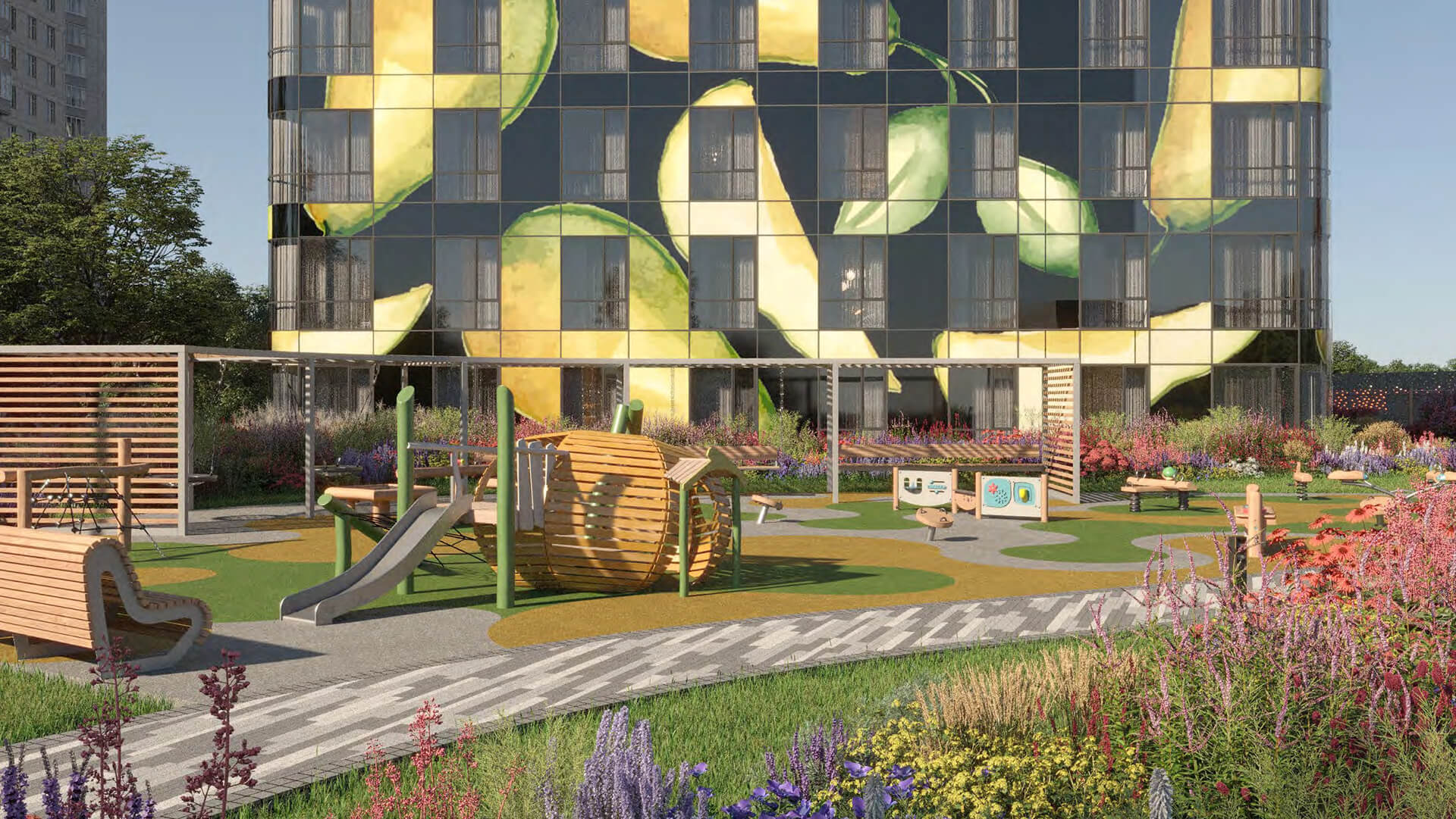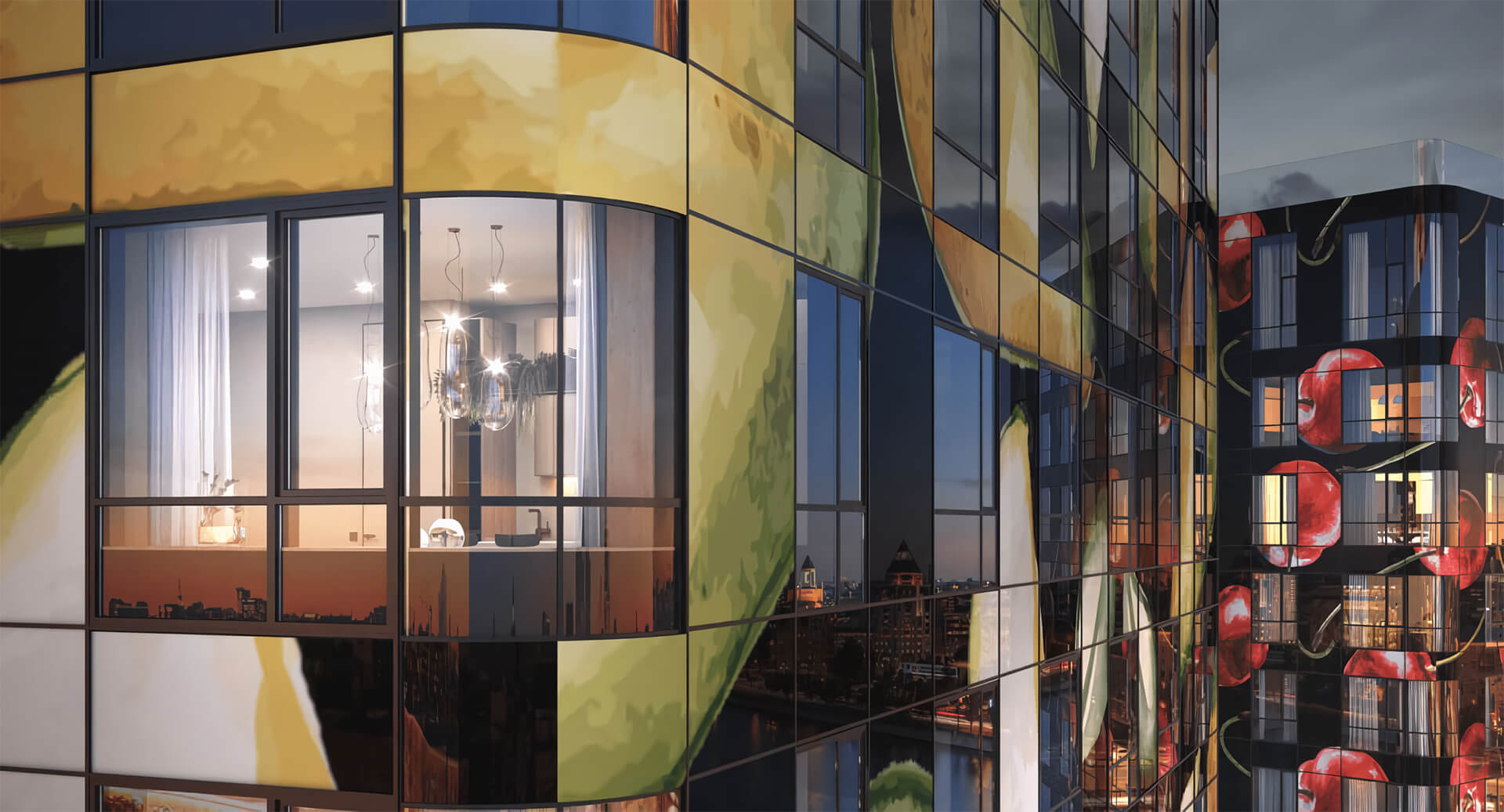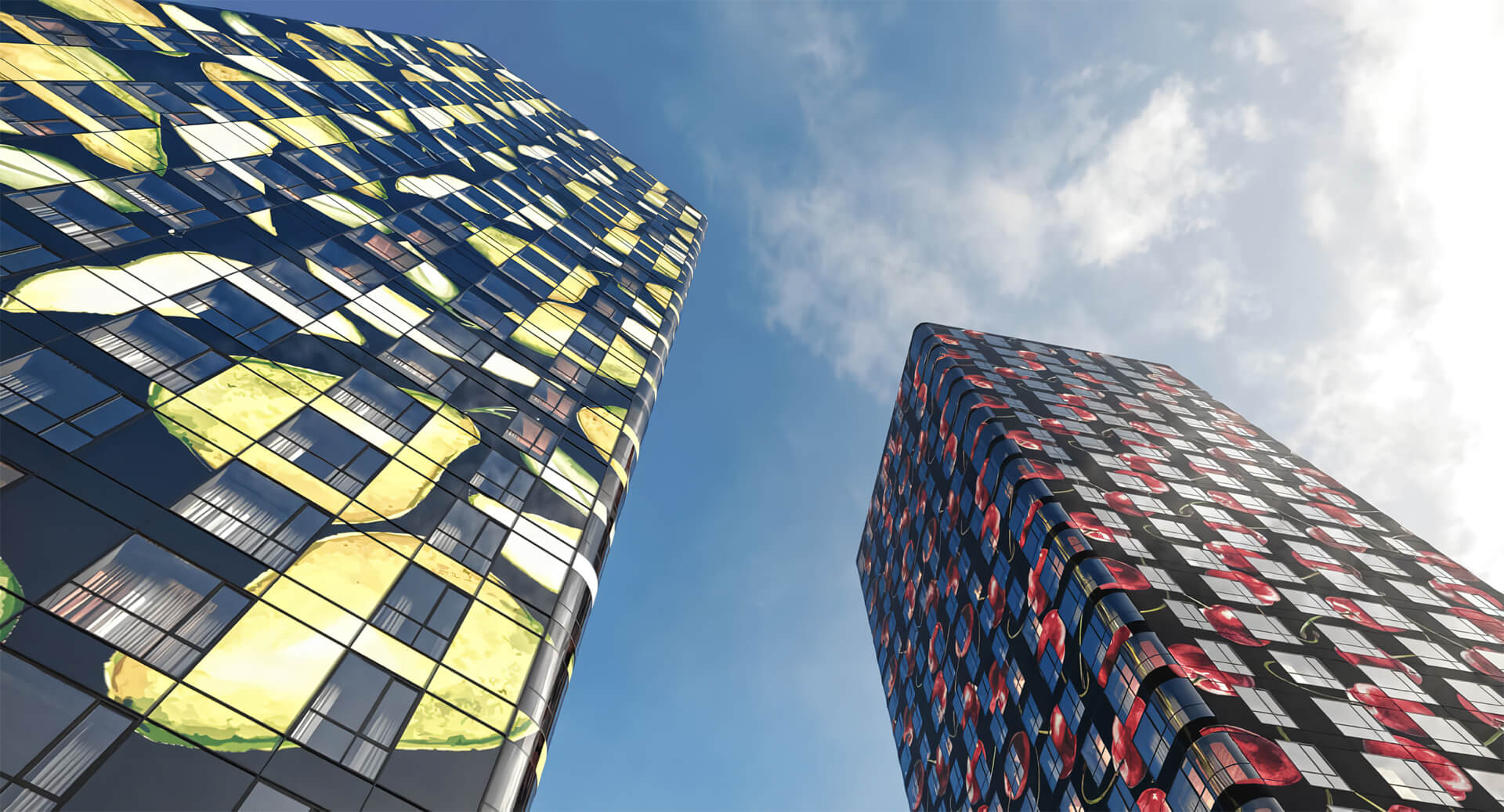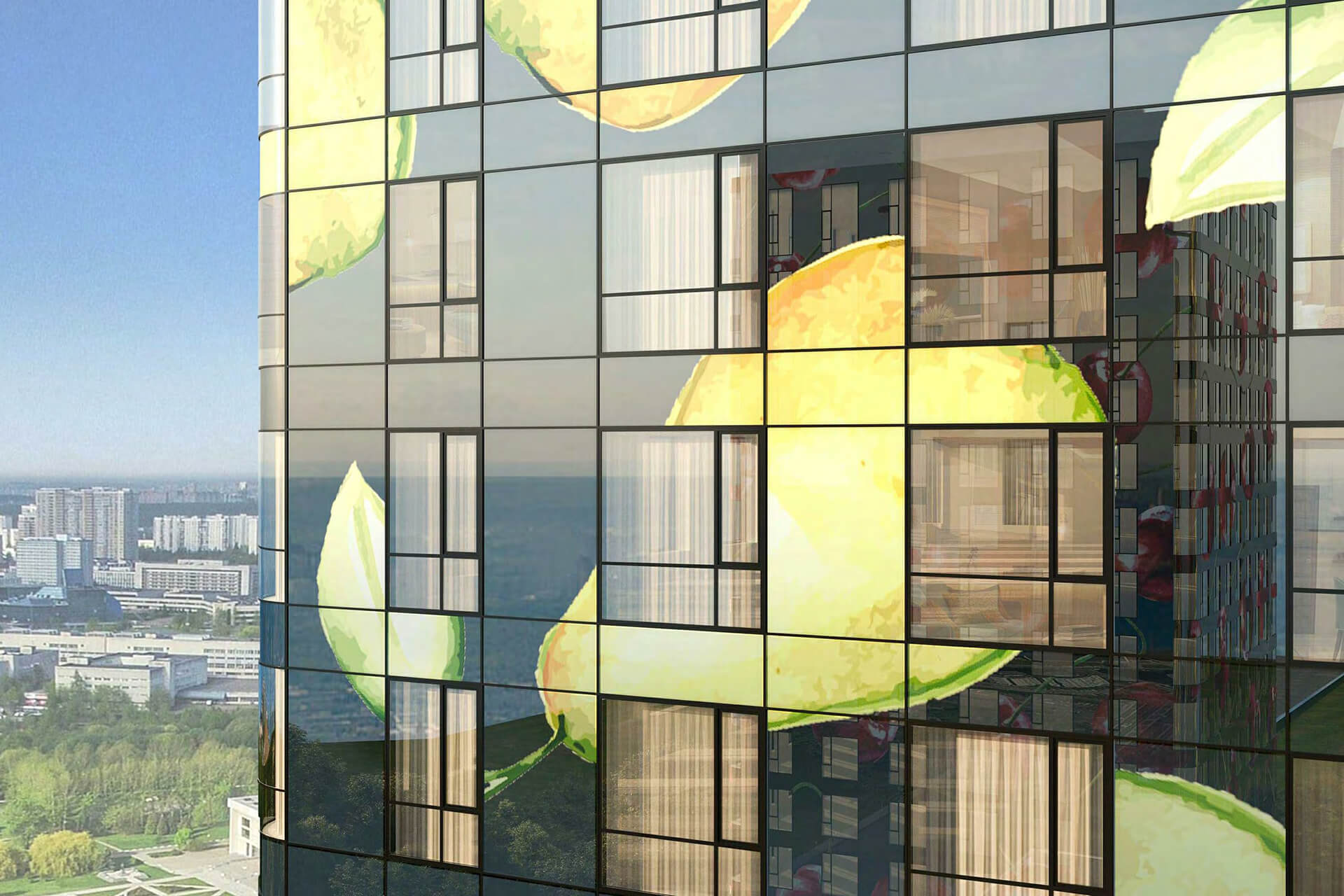 Жилой комплекс «Инноватор» — это архитектурный шедевр, вдохновленный выдающимся биологом и ученым Иваном Мичуриным. Его новаторский подход и научные открытия стали основой для создания уникальной визуальной концепции, разработанной архитекторами бюро СПИЧ. Живые образы «мичуринских» садов воплотились в фасадах комплекса: сочные цвета, фруктовые паттерны вишни и груши привлекают внимание, делая жилой комплекс «Инноватор» ярким акцентом в городской среде. Фасады из цельного стекла с элементами моллированного стекла формируют сложные и неповторимые контуры зданий, придавая им современный, динамичный вид.
