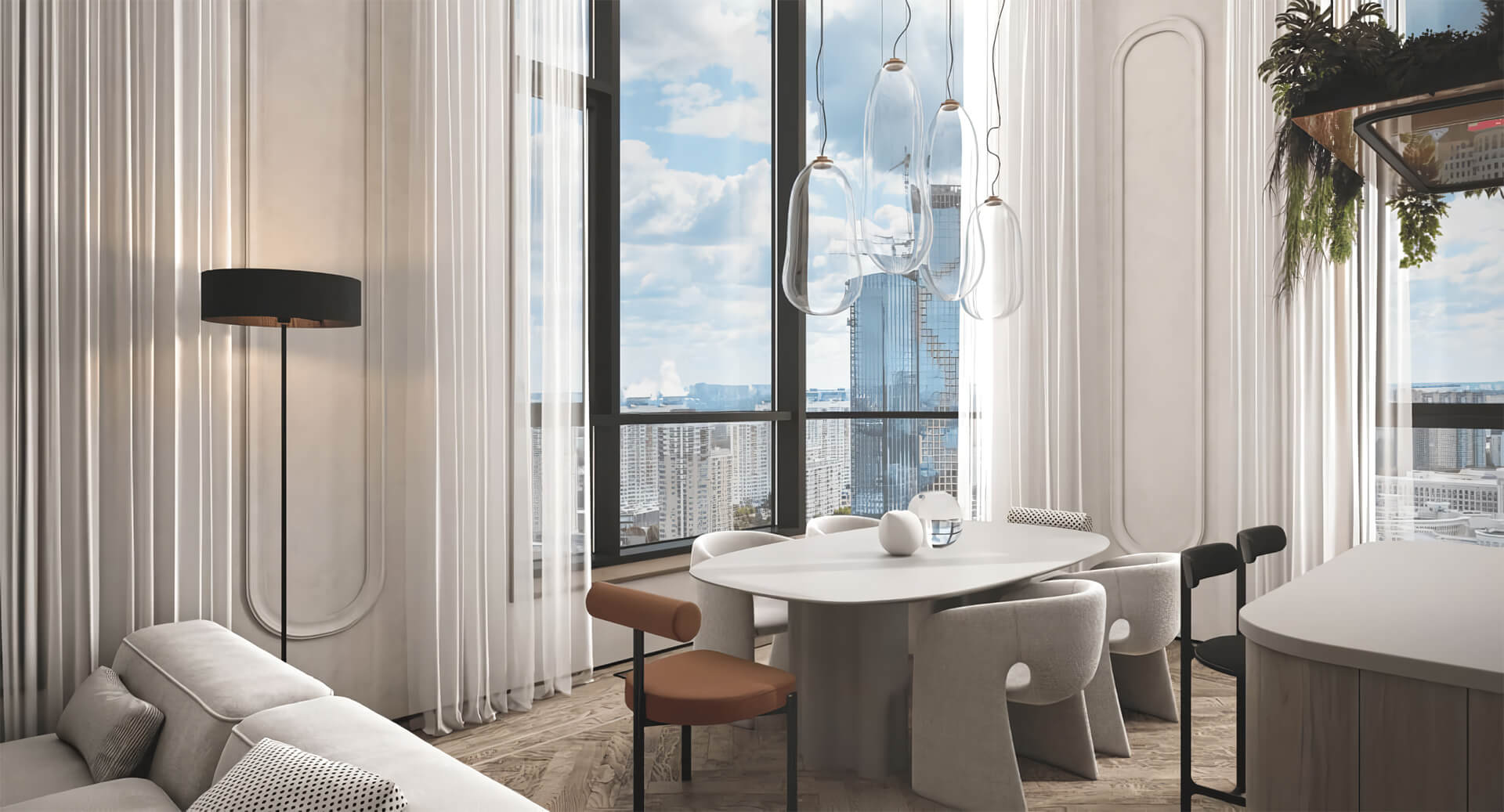 Площадь квартир варьируется от 21 до 137,8 м², что позволяет выбрать оптимальный вариант как для компактного проживания, так и для более просторного жилья. Высота потолков в комплексе также разнообразна и составляет от 3,1 до 4,5 метров, что добавляет ощущение простора и света в каждую квартиру.