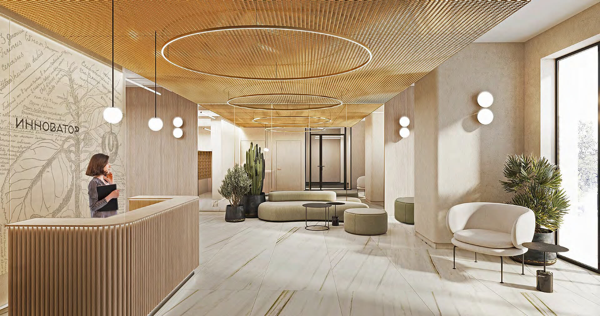 Консьерж-сервис, работающий на территории комплекса, обеспечит высокий уровень обслуживания и поддержку в любых вопросах. Дизайнерская отделка общественных пространств выполнена с использованием только качественных материалов от ведущих производителей. Это создает атмосферу уюта и гармонии, начиная с самого входа в дом и продолжая на протяжении всего пребывания в «Инноваторе».