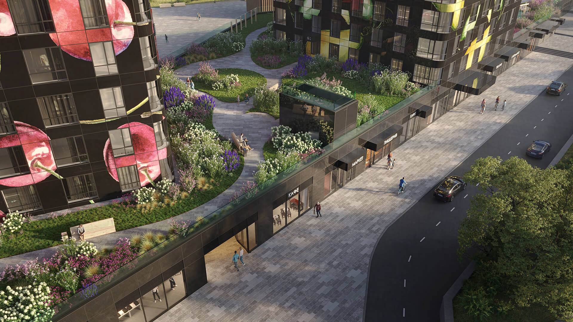 В жилом комплексе «Инноватор» забота о балансе между динамичным городским ритмом и гармонией с природой воплощена в уникальном ландшафтном дизайне. На стилобате здания, расположенном на уровне второго этажа, появится полностью благоустроенный парящий над землей сад, создающий уединенное и расслабляющее пространство в самом центре города.